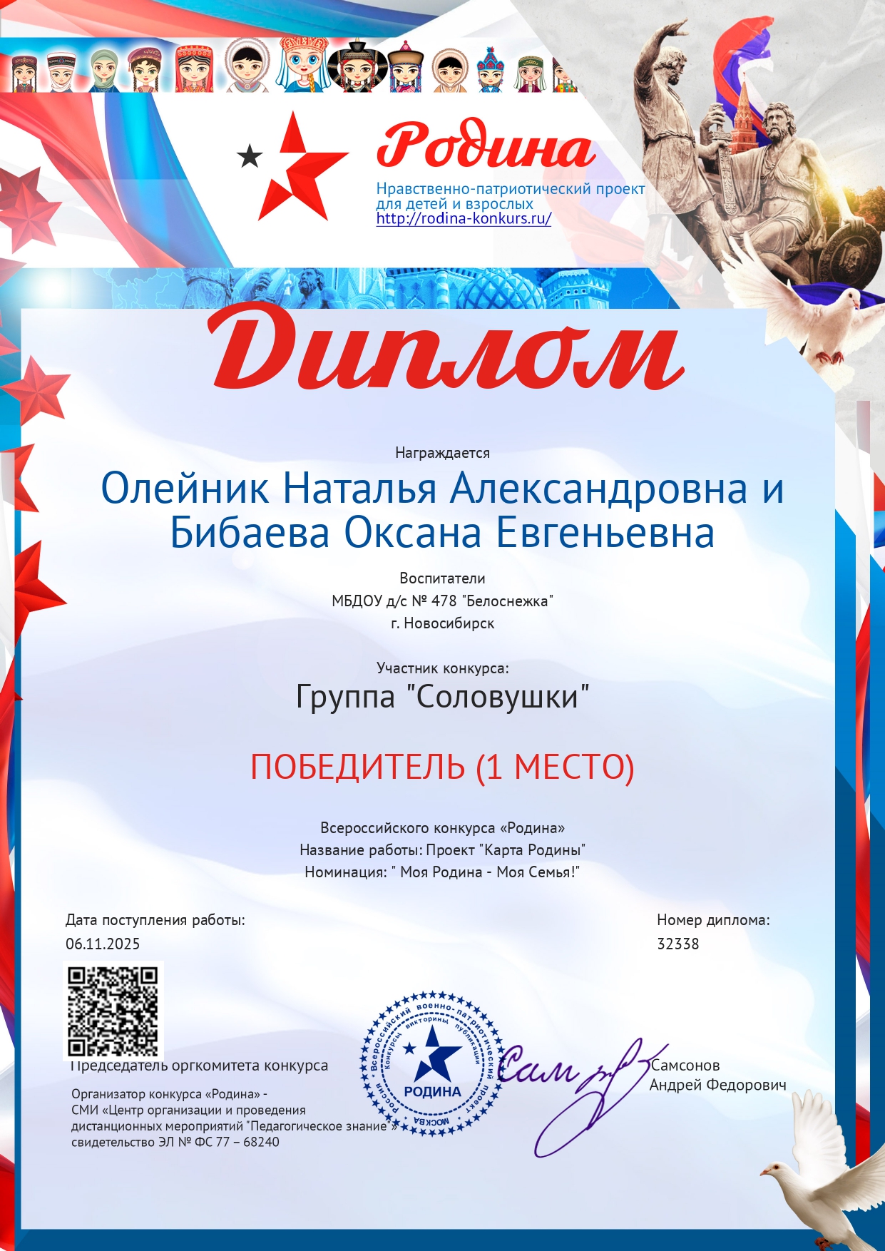 Номинация: " Моя Родина - Моя Семья!" Победитель 1 место, 06.11.2025 г.