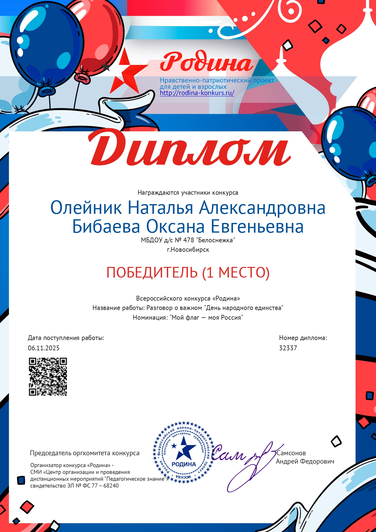 Номинация: "Мой флаг — моя Россия", Победитель 1 место, 06.11.2025 г.